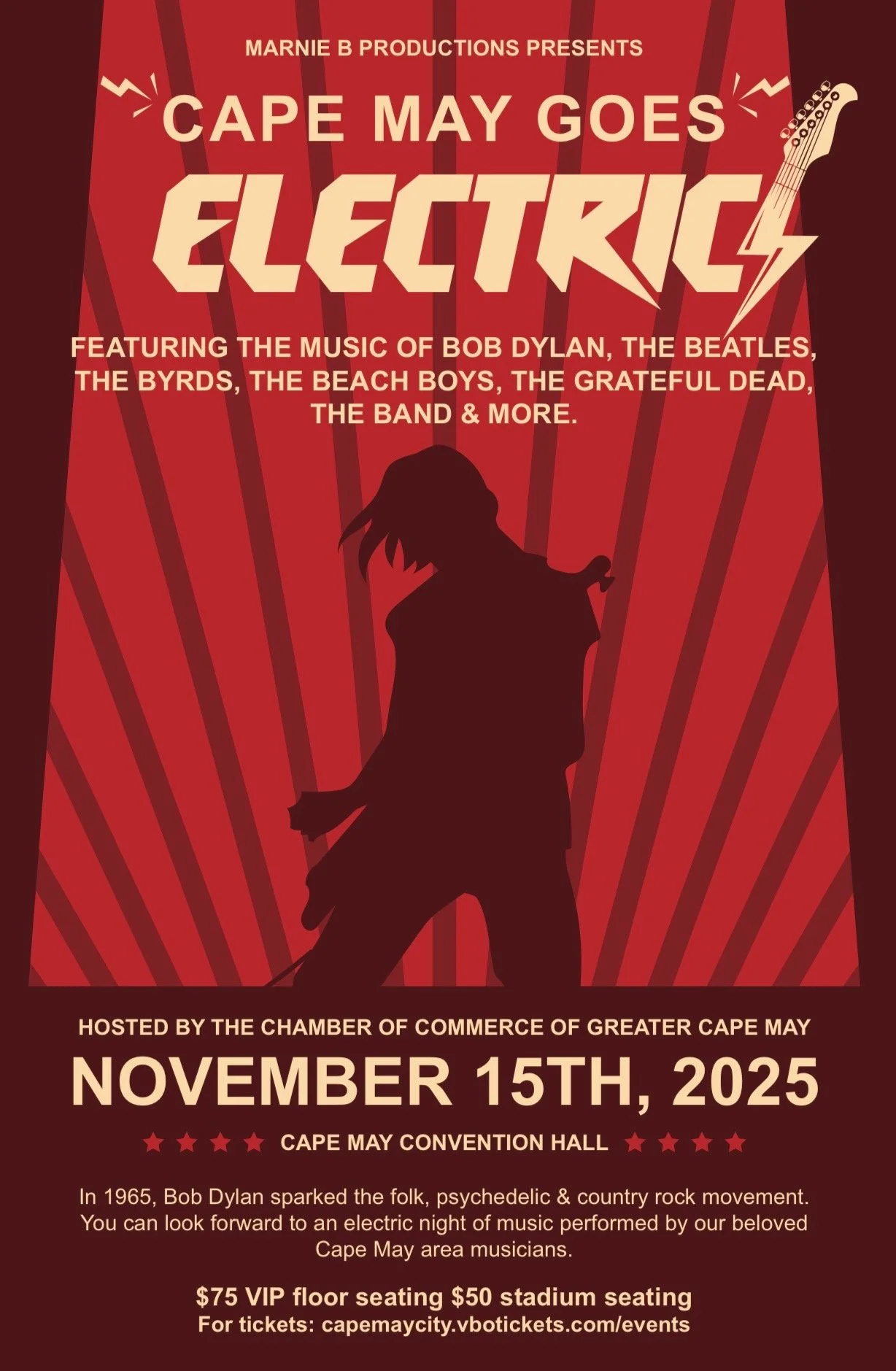 ATTENTON MUSIC LOVERS – Concert Alert! Greater Cape May Chamber is hosting - “Cape May Goes Electric,” Sat, Nov 15th at Cape May Convention Hall. 714 Beach Avenue in Cape May