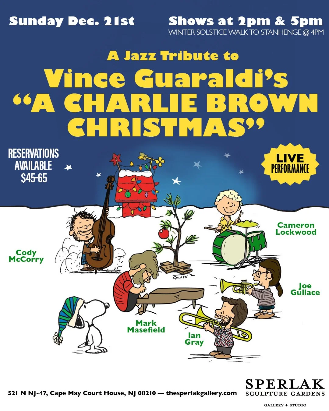 Two shows offered this year for the Vince Guaraldi’s “A Charlie Brown Christmas” at the Sperlak Sculpture Gardens. For more information on tickets, visit thesperlakgallery.com with a traditional 4 pm Winter Solstice Walk on the grounds of the sculpture gardens.