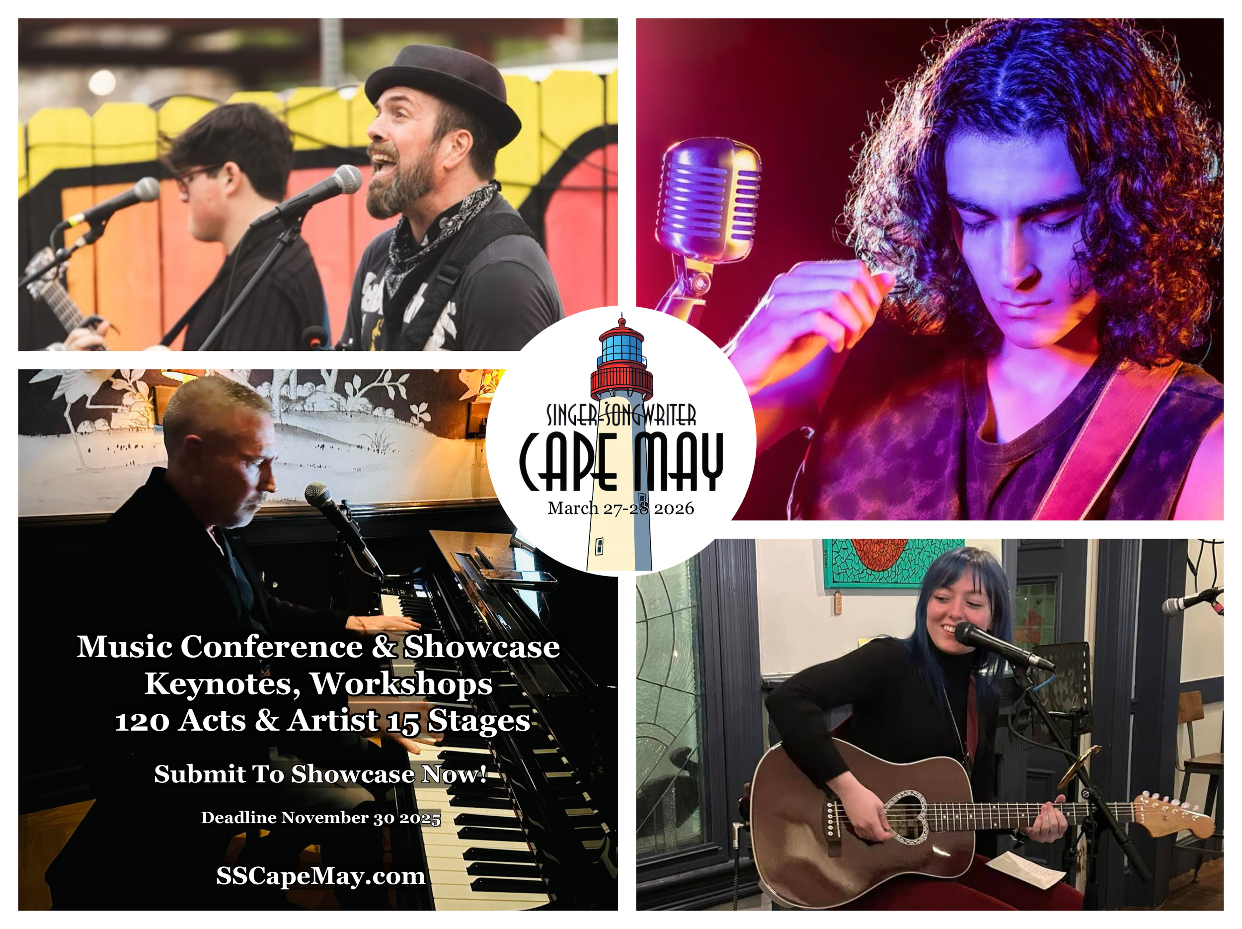 The annual Singer-Songwriter of Cape May was discontinued in 2020 as we approached the 13th annual conference & showcase. Since 2008, the conference was based at Congress Hall’s Grand Ballroom and Harrison Conference Center and at it’s height the weekend showcases featured over 80 music industry professionals as speakers and over 130 acts and artists performing at 16 venues in historic downtown Cape May New, Jersey. The next Singer-Songwriters of Cape May will take. place on March 27-28, 2026.
